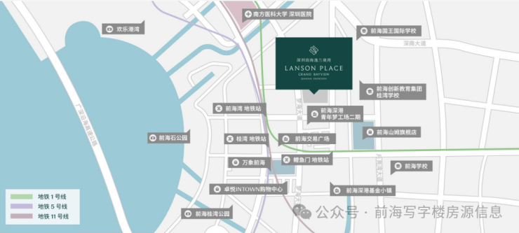 地铁交通:1、5、11号线前海湾地铁站B1出口
