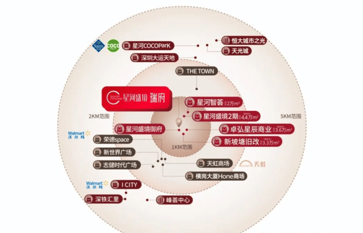 🏛约5公里范围:尽揽百万㎡商圈,星河COCOPark(龙岗山姆会员店)、大运天地、恒大城市之光、天光城等知名商业体环伺,畅享都市繁华便利。