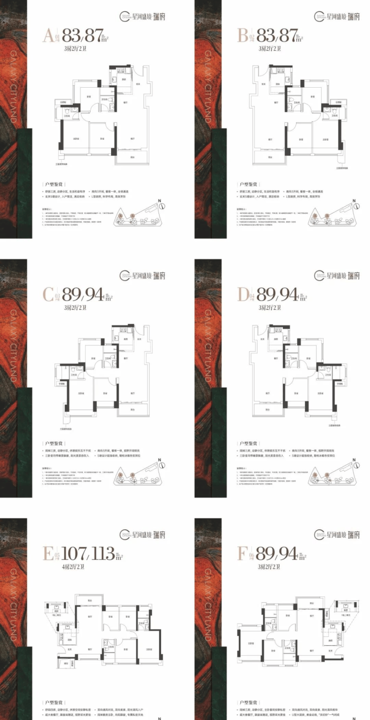 住宅约87-89-94㎡3房2厅2卫、107-113㎡4房2厅2卫精装住宅