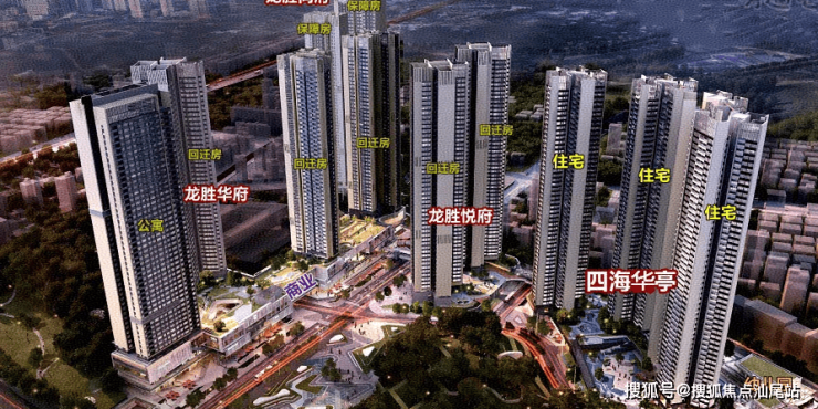 四海华亭,项目前身为“龙胜旧村城市更新单元”,共分5个地块建设,分别是龙胜华府,龙胜尚府,龙胜悦府,龙胜云坊,四海华亭,另外配建1所9年制学校,如今的龙华中学弘毅校区(龙胜学校),项目总占地面积约5.45万㎡,总建筑面积约56万㎡。