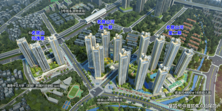 名居山河里,位于龙岗区园山街道3号地铁线永湖站东南侧150米,共分3个地块开发。