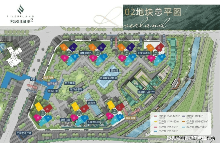 02地块:总占地面积约3.4万㎡,总建筑面积约24.2万㎡,计容建筑面积约19.6万㎡,容积率5.77,绿化率40%,共由7栋总高38-48F的住宅组成,其中1栋3/4单元住宅38F,1栋1/2/5/6/7单元住宅48F,2栋是1所18班制幼儿园。