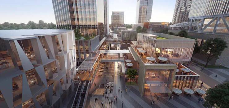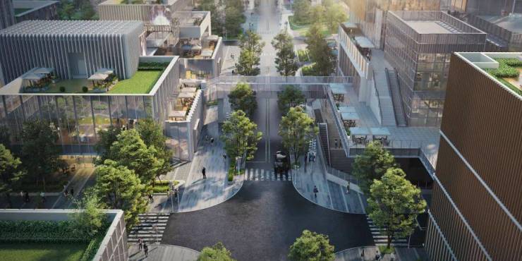 地下空间联通地铁站、公交始末站,空中连廊通达独栋办公、约8万㎡商业,互联互通设计,工作和生活随心切换,且可为商墅多入口引流。