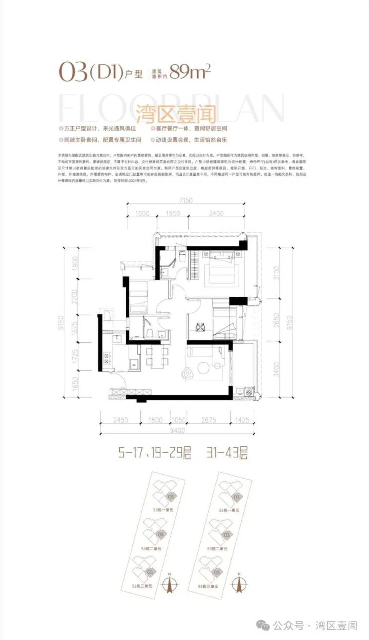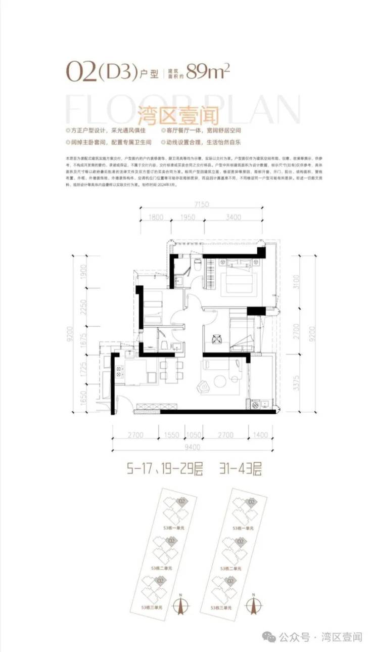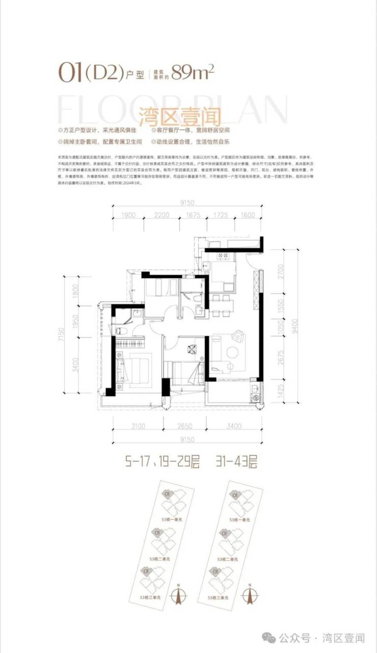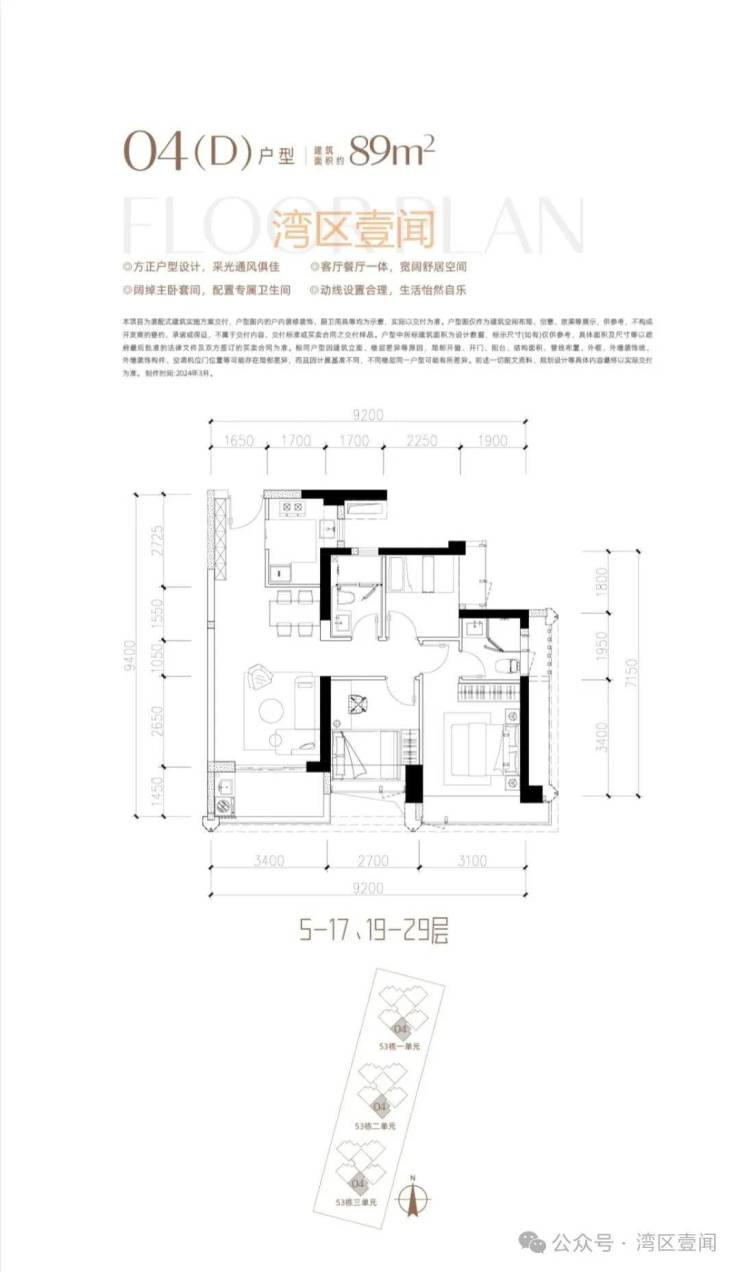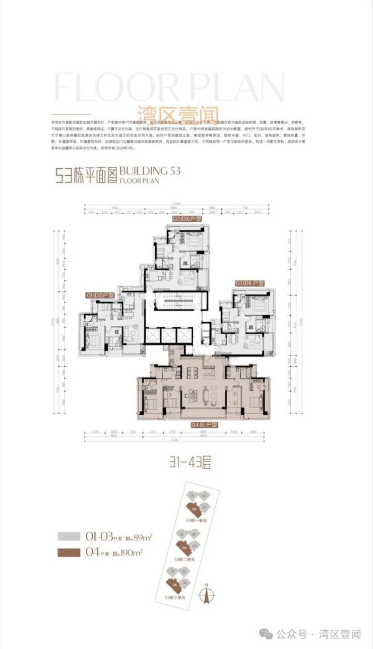 此次推售产品为53栋3单元 3梯5户/3梯4户 89/190㎡