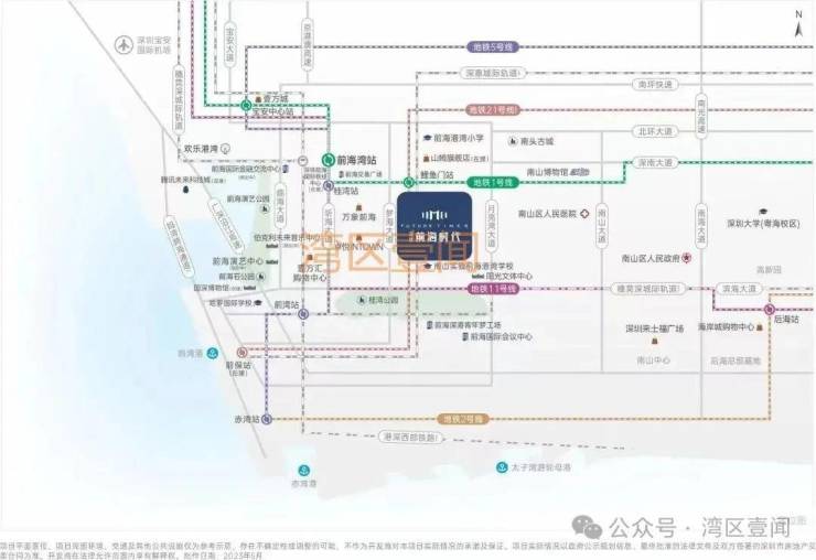 轨道方面,项目距离地铁站为1号线鲤鱼门站约720米,距离5号线、9号线前湾站约900米,1/5/11号三条地铁线交汇。