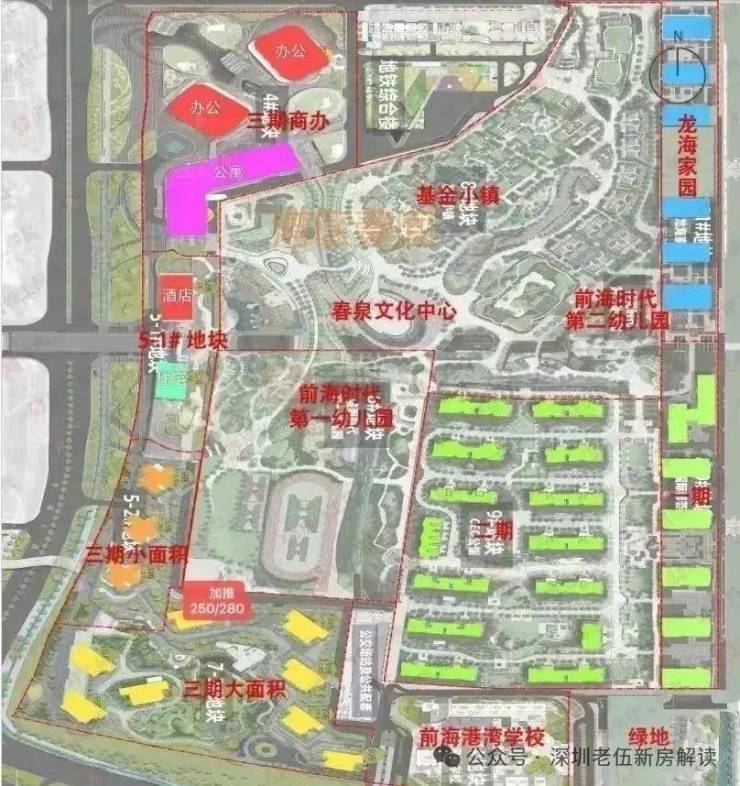项目共分三期开发,项目总占地约33.6万㎡,总建面110万㎡,是前海标杆住宅项目。前海时代一期最早2014年开盘,开盘当天超两千人抢房;前海时代二期2017年开盘,当天售罄,2023年12月前海时代三期尊府6小时售罄,自带“日光盘”属性,当之无愧的前海日光神盘。前海时代三期目前还在建设,整个大项目包括了商业、写字楼、公寓、酒店、住宅,可以算是一个超大型的综合体。片区效果图参考