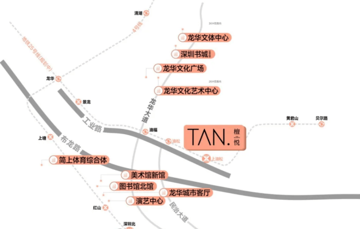 交通配套:檀悦府交通便利,直线距离地铁25号线(一期)上油松站(规划中)约100m,同时25号线(规划中)与4号线、22号线(规划中)、27号线(规划中)交汇,实现一站一换乘,快速畅达南山深圳湾超级总部基地、福田CBD、坂田华为基地、罗湖等核心区。此外,项目紧邻珠三角环线高速、龙华大道、工业路、人民路、布龙路等多条主干道,半小时内可直抵福田、罗湖、南山等热点片区。