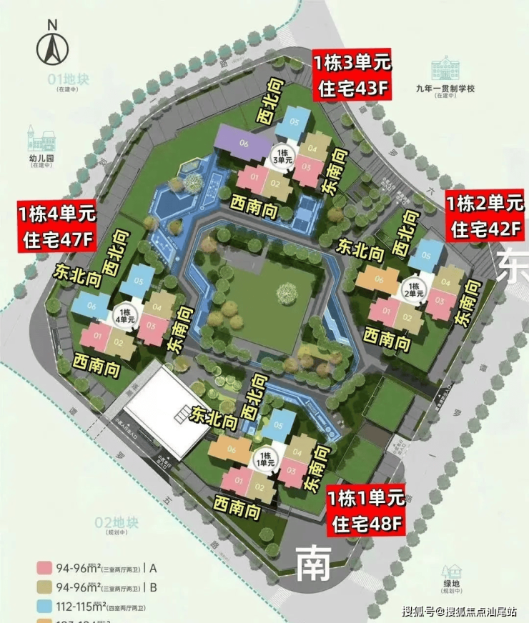 住宅类型多样:提供建面约95-124㎡的3-4房户型,满足不同家庭需求。