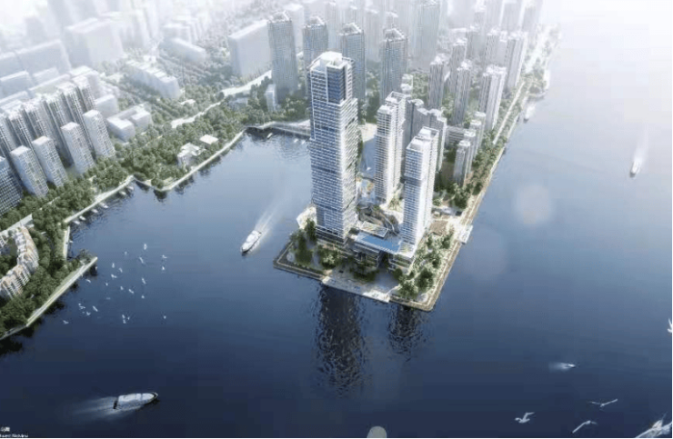 项目分两期开发,主要由3栋高层建筑组成,将建设成集滨海休闲、精品酒店、特色商业、办公、公寓于一体的滨海商业综合体。