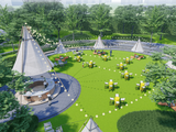 设置瞭望塔、树屋、攀岩墙等分龄段游戏区,高绿量的户外亲子互动场地。