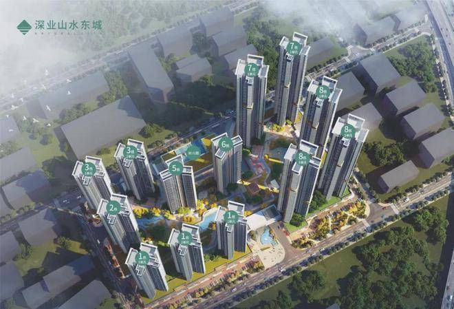 深业山水东城一期,总占地面积约4.16万㎡,总建筑面积约24万㎡,计容建筑面积约15.88万㎡,容积率2.33,绿化率21.14%,共由8栋总高32-33层的住宅组成,其中1栋1/2/3单元/3栋2单元住宅32F,2栋/3栋1单元/5栋/6栋住宅33F,4栋是1所21班制幼儿园。
