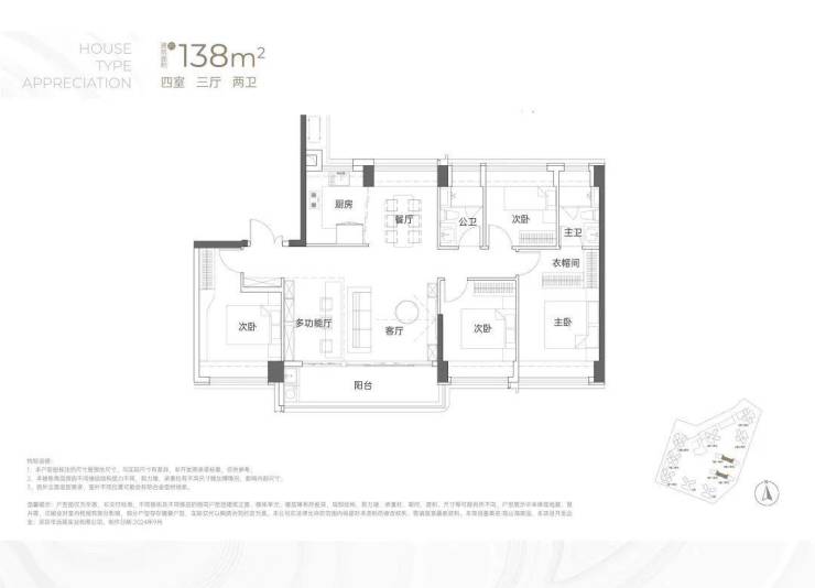 建面约138㎡4房2卫