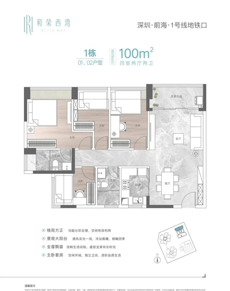 【建面100㎡4居】590万-分布于1栋 ,2梯7户,层高2.90米,总楼层13F
