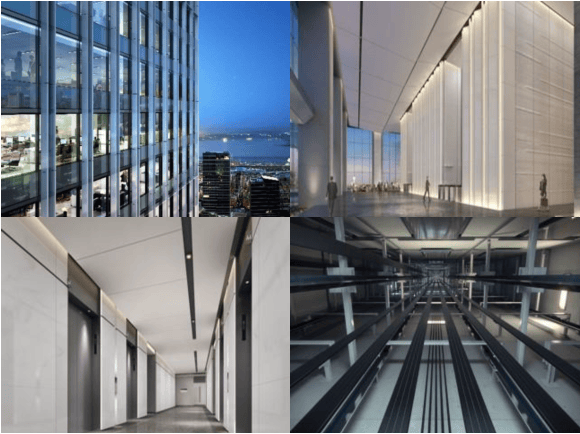大厦电梯采用目的楼层控制系统与大堂闸机联动,智能派梯最大化提升商务人士的办公效率。通过智能访客系统,来访客户能够轻松快速到达拜访企业。同时匹配24部智能商务电梯,采用目的楼层控制系统,最高6m/s,大大提升企业商务效率。