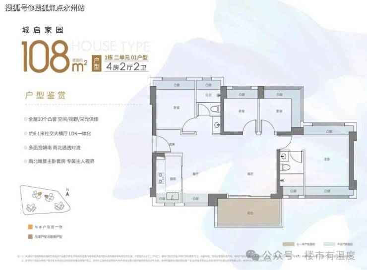 设计的是横厅南北通透格局,客餐厅6.12米开间,LDKB一体化,四开间朝南,主卧双飘窗南北通设计