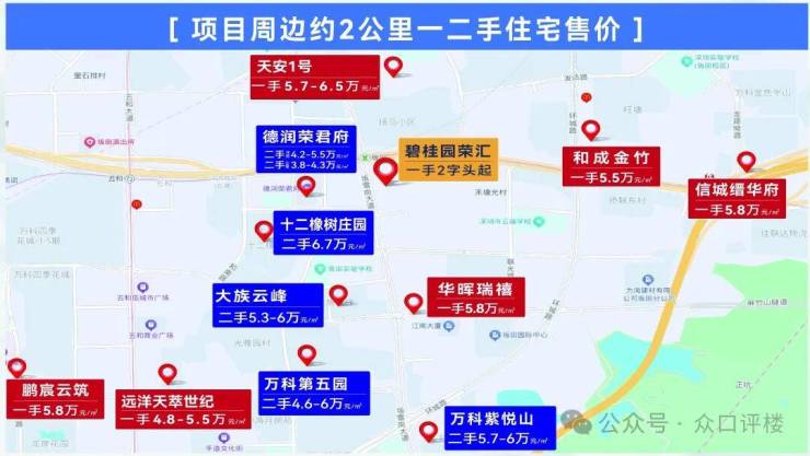 周边约2公里范围,坂田在售新房住宅售价普遍在4.8-6.5万元/㎡;二手住宅售价普遍在4.2-6.7万元/㎡。