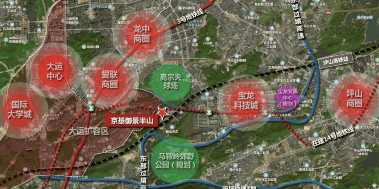 多维交通路网,执掌城市繁华-地铁:地铁14号线(建设中)1站抵大运、8站达福田;高速:东部过境高速(建设中)直达莲塘口岸,连通香港;高铁:东邻厦深高铁坪山站,高效接驳众多城市。