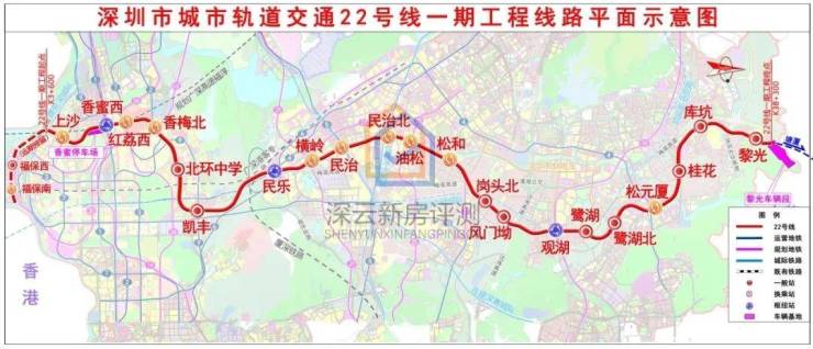 22号线鹭湖站在建,始于龙华黎光站,途经龙岗区,终于福田上沙站,开通后到福田仅需45分钟。