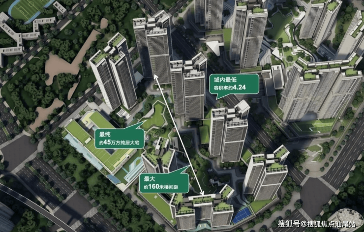 【奢阔楼间宽距】近160米超宽楼间距,最大化楼间距保证了视野的开阔度和充分的通风采光,高私密性,高舒适性。