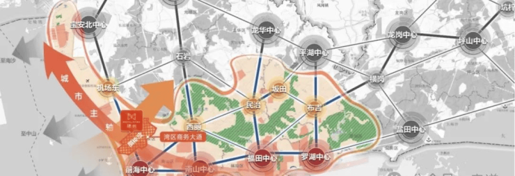 深圳城市主轴自罗湖、福田、南山一路向西迭代,4.0城市新中心落定前海宝中。