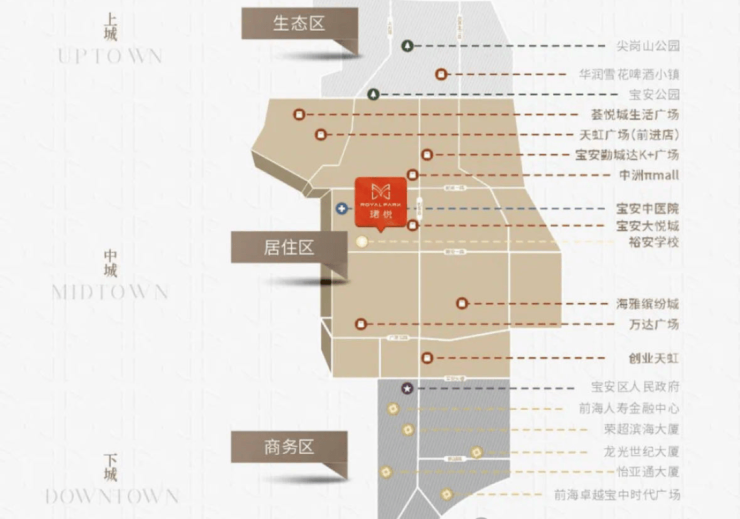 珺悦ROYAL PARK位于湾区商务大道黄金轴点上,占据宜居地段,约3KM生活半径集萃全维超配资源,享繁华生活配套。