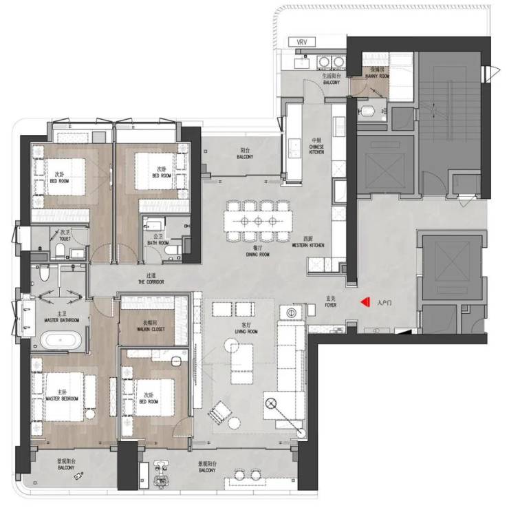 建面约270㎡4房+1工人房+4卫