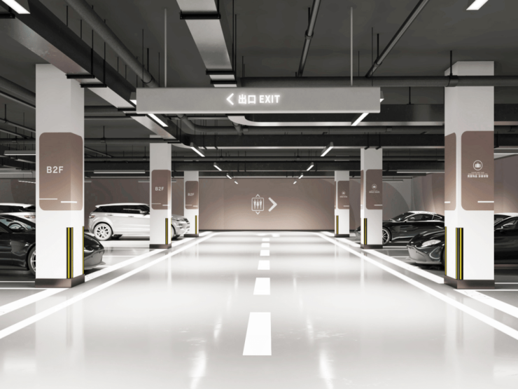 豪华停车场,共有538个地下停⻋位,分区域分业态停⻋,停⻋不再难。