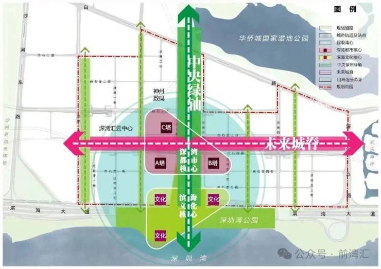 作为深圳市7大总部基地、18个重点发展区域之一,片区区位条件优越、自然景观得天独厚、城市门户形象突出,综合开发价值高。在粤港澳大湾区与中国特色社会主义先行示范区的“双区驱动”下,深圳被赋予了建成全球标杆城市的使命。