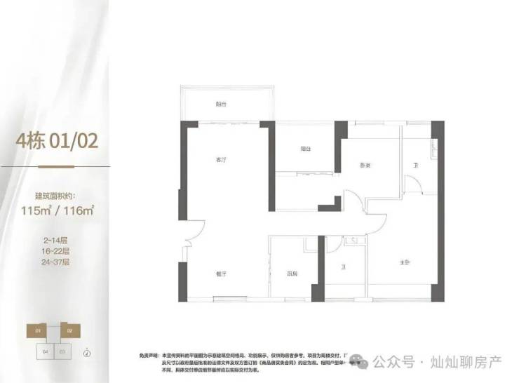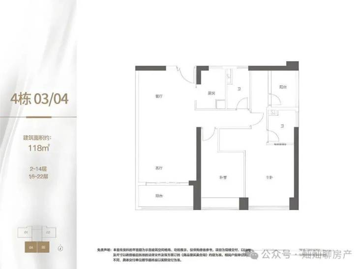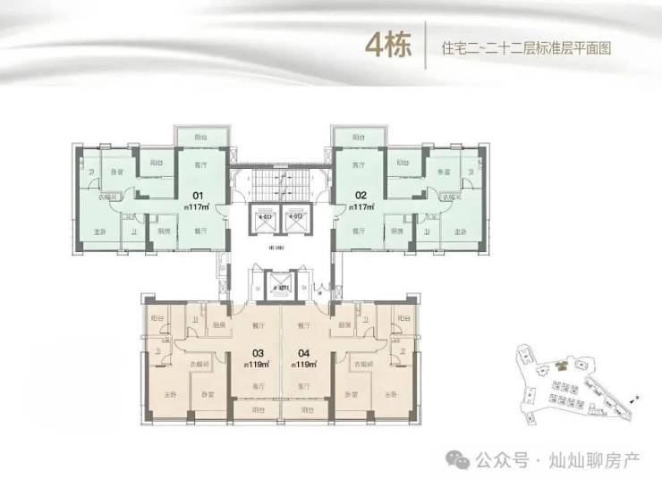 4栋总高37层分高低区,低区23楼以下是3梯4户,01和02户型115㎡西向看大南山,03和04户型118㎡东向看蛇口、深圳湾、香港的山海景观及城市景观。