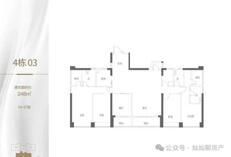 约246㎡4+1房:龙抱珠户型,主卧+次主卧套房设计东南朝向,看深圳湾海景、城景,全屋通透,采光充足。