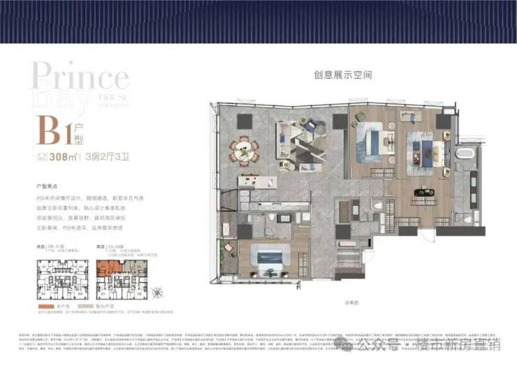全户型纵享环幕视野。项目打造主力建面约215-415㎡纯粹品质公寓共191席,顶层为建面约1270㎡公寓产品。