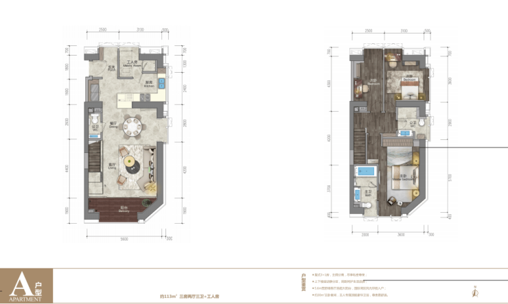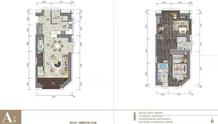 ★113㎡复式三房两厅三卫+工人房 南北通透三面景观,5.6米客厅与主卧开间,独具品位,尽享奢阔。
