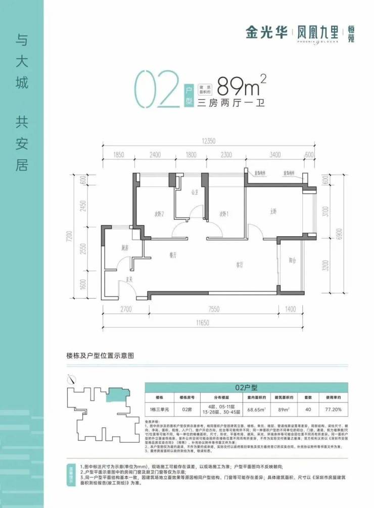 金光华凤凰九里:位于龙岗区平湖街道,由深圳大承企业管理有限公司开发建设,为平湖凤凰工业园旧改其中两地块,两个地块加起来将提供1992套房源,其中保障性住房400户,可售商品住宅1592户。
