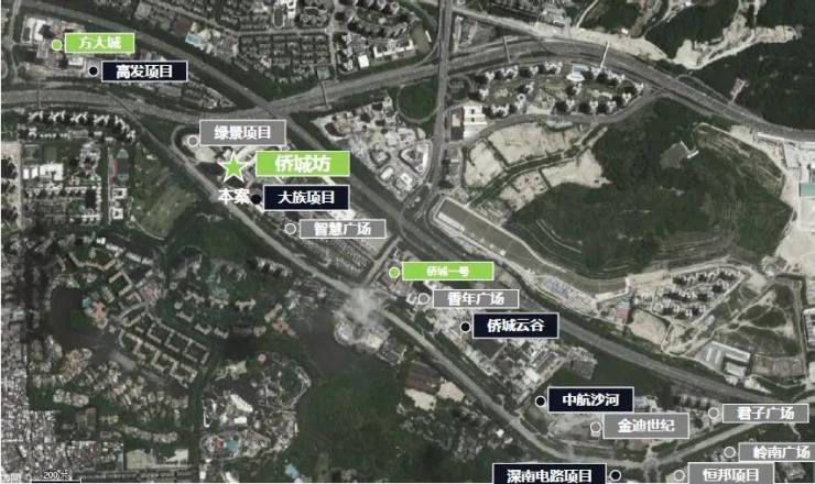侨香路总部产业带以带状发展,容积率低,交通顺畅,舒适度高。被誉为深圳的第二条“绿色深南大道”,沿线共有10余个在建或规划项目,其中以商务为主的项目体量超过215万㎡,中洲、绿景等知名品牌开发商相继入市,区域发展势头强劲。