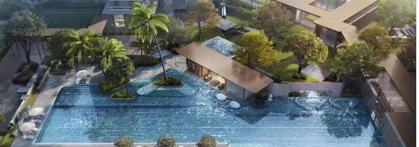 50米赛道级别宝格丽蓝宝石泳池:社区中间的奢华泳池,搭配壮阔江景,提升居住品质。