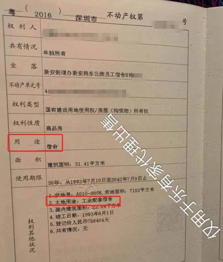 尽管它是R3三类居住用地,但房屋用途是宿舍,使用年限70年,这一类房产在深圳福田南山宝安都有很多,宝安有个宝安中学的学区房,叫TATA公寓(房产证名字叫员工宿舍),房屋用途也叫宿舍,并且土地用途,显示工业配套宿舍。