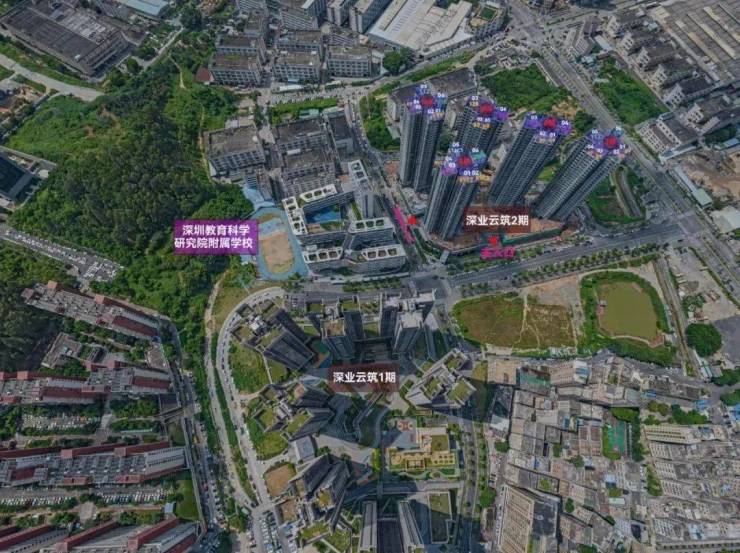 深业云筑2期,由深圳国企深业集团打造,共由5栋总高32-33F高的住宅组成,其中除了6栋总高33F,其它栋数都是32F,总规划795户,全部都是商品房住宅,其中5栋B座,6栋为2梯4户设计,其它栋数为3梯6户设计。