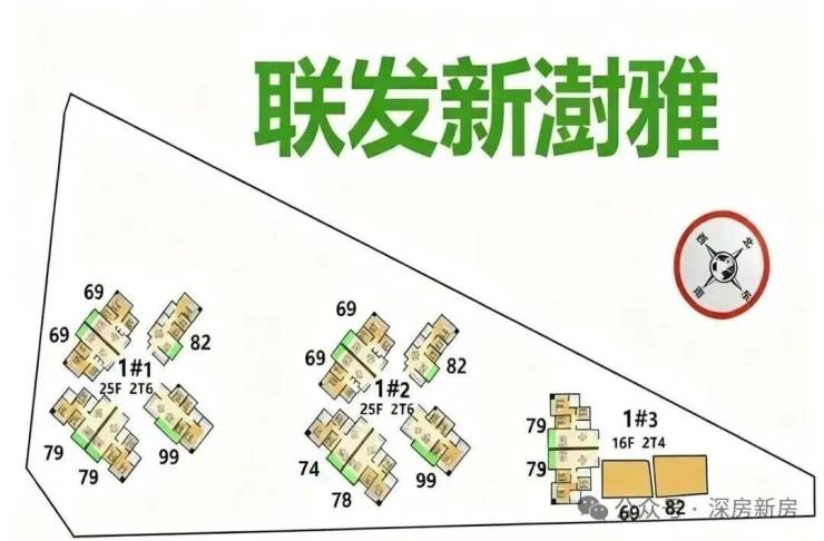 龙华红山,联发新澍雅居预计2026年一季度取证入市,户型相当炸裂,面积有69平的2+1房1卫,79-82平的3房2卫,99平的4房2卫户型,共332套房源,价格方面可以参考附近前期入市的联发臻著雅居,备案均价7.3万/㎡,当时折后均价约6.4万/平,期房精装交付,目前营销中心暂未开放,户型图供参考