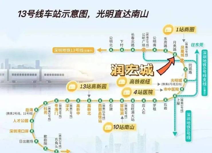 而地铁13号线是光明未来价值最高南北地铁线路,中途连接西丽留仙洞总部,深圳南山科技园,最终连接到深圳湾一带。