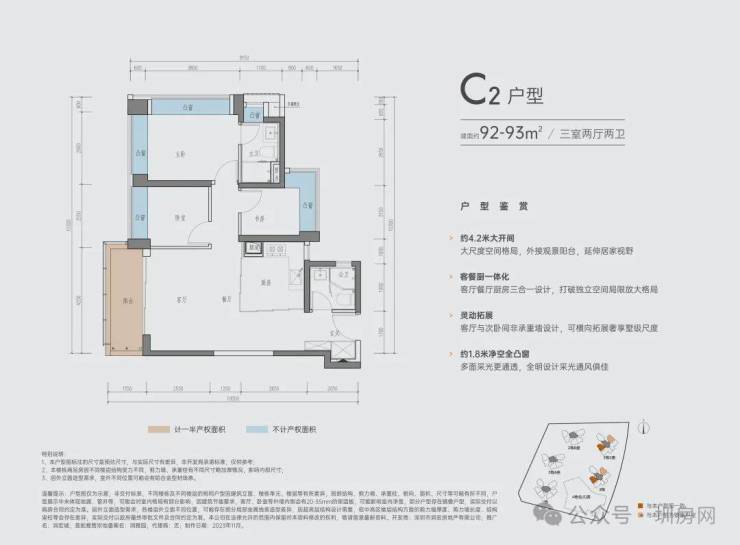 C-2户型 | 建面约92-93㎡三室两厅两卫