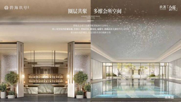 涵盖室内景观泳池、会客厅、碧海茗坊、健身房、瑜伽室,沉浸式室内高尔夫球等多元化空间,打造全龄共享的精神主场。