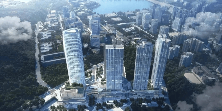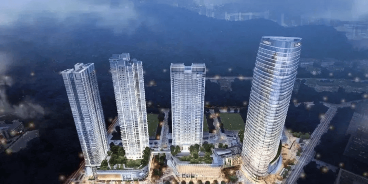 项目建面约32万㎡,双地铁上盖,集住宅、五星级酒店、商业、商务总部等5种复合业态于一体。