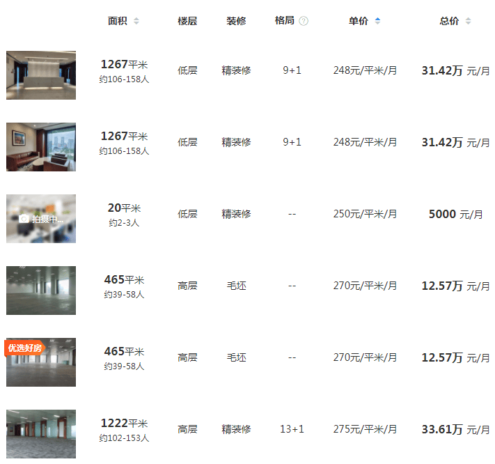 物业:35元 /月/㎡(含工作日8.00-18.00空调),世邦魏理仕服务