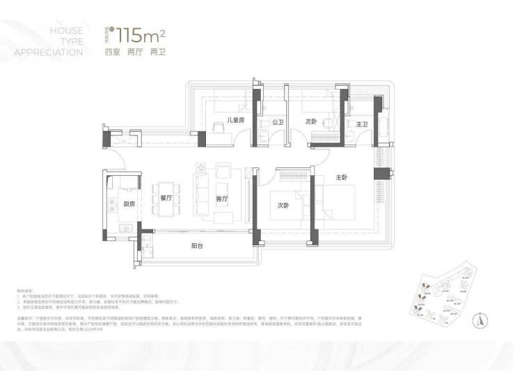 最值得注意的是,项目容积率仅约2.65,放眼目前深圳核心区的在售新盘也少很少见。项目共870套住宅,涵盖建面约95㎡3房、约110-115㎡4房以及约138㎡4房。
