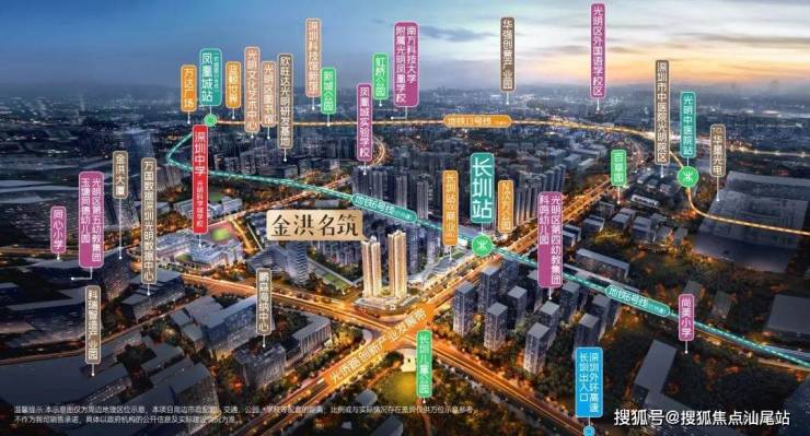 金洪名筑所在凤凰城片区,是光明门户枢纽,将打造成光明中央商务区、总部经济聚集区、超级商圈所在地,是科学城重要的成果转化平台和创新平台。