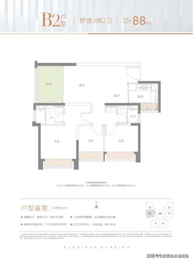 88㎡ 三房二厅两卫 总价326-338万