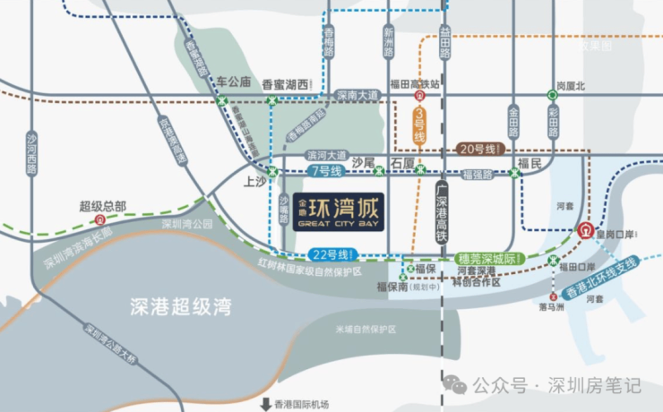 金地环湾城位于福田区福强路与沙嘴路交汇处,地处深港超级湾海岸线核心区域,是深圳与香港双城融合发展的关键节点。