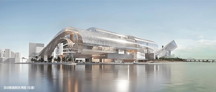预计28年建成、投资50亿的深圳歌剧院,总建筑面积22.2万平方米,包含1800座歌剧厅、1200座音乐厅及多功能剧场,可举办维也纳爱乐乐团、大都会歌剧院等顶级演出,由普利兹克奖得主让·努维尔设计。