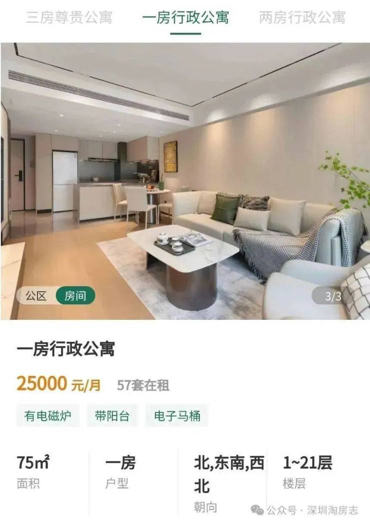 其75㎡1房月租金可达2.5万起,平时一晚就要698-777元起。