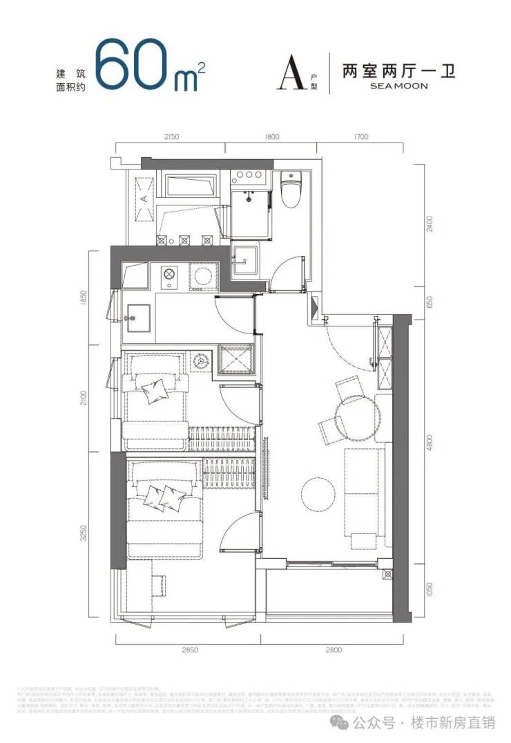 60㎡两房:自住/出租灵活切换,湾区新贵的「海景首置」